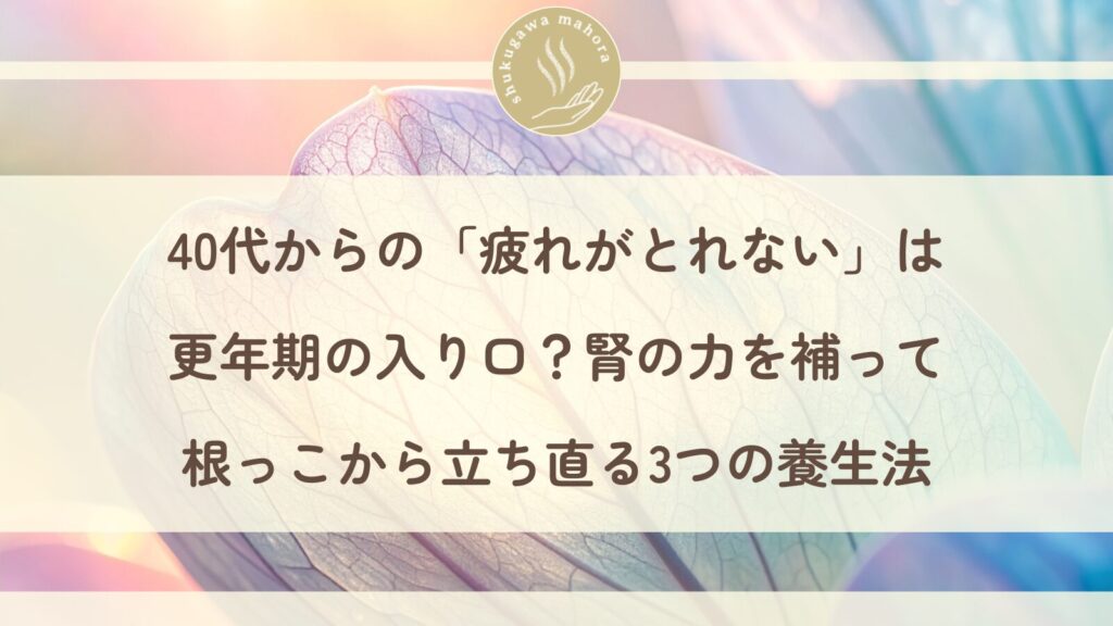 40代からの「疲れがとれない」は更年期の入り口?腎の力を補って根っこから立ち直る3つの養生法【夙川駅徒歩4分 心と体を整える鍼灸院】