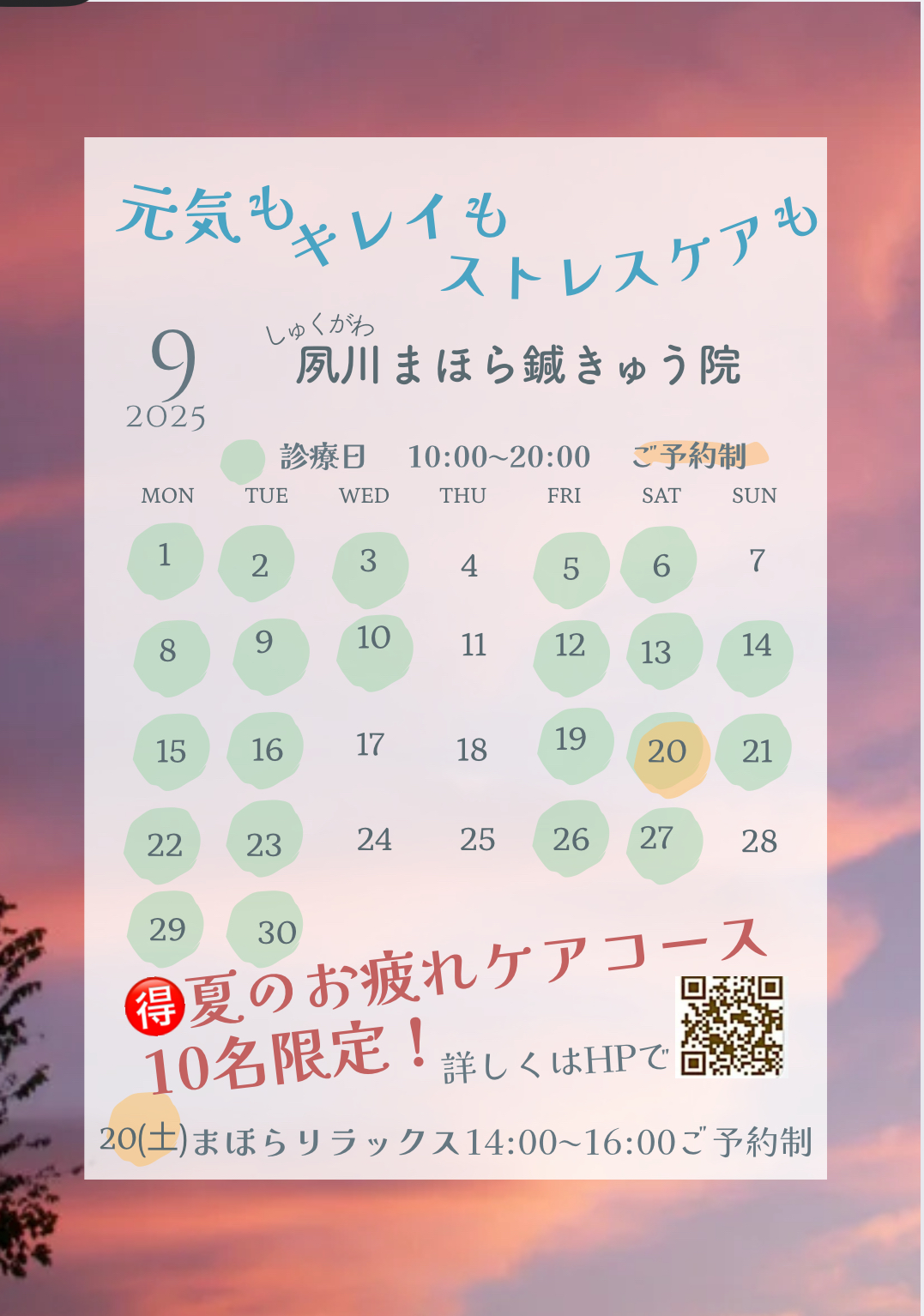 夙川まほら鍼きゅう院 年末〜新年キャンペーン:新しい年を軽やかに迎える 自律神経メンテ3回コース